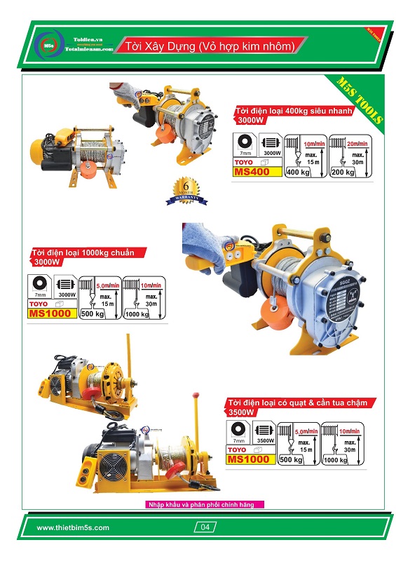 Tời mặt đất TOYO là một trong các loại tời kéo mặt đất do Công ty Thiết bị Công nghiệp M5S nhập khẩu trực tiếp. Gồm hai dòng sản phẩm với màu sắc và chất liệu khác nhau.