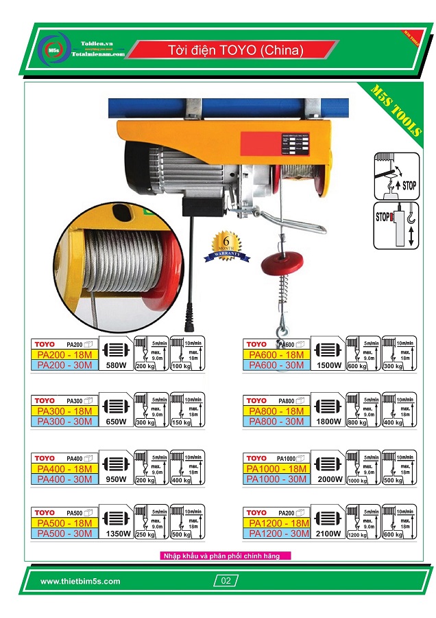 - Thứ tư, các sản phẩm tời điện TOYO khi mua hàng tại M5s đều sẽ được thay dây cáp miễn phí trong thời gian bảo hành. Đây chính là điểm đặc biệt nhất khi mua tời điện TOYO tại M5s, không địa chỉ nào khác có được.