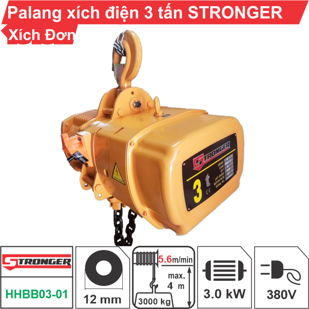 >>Xem video: [Cận cảnh] Palang xích điện 3 tấn Stronger (xích 7 mét) chính hãng, kéo chuẩn tải 100%