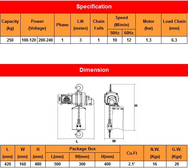 - Pa lăng xích điện 250kg DU-825 với thiết kế tinh tế, gọn nhẹ, được chế tạo từ hợp kim nhôm
