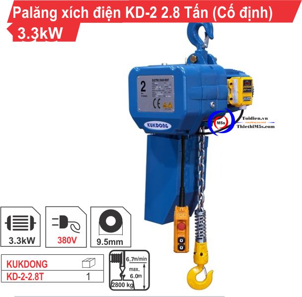 Palăng xích điện 2.8 Tấn KD-2 được sử dụng chủ yếu trong các vực từ nhà xưởng, xí nghiệp, kho hàng, bến cảng, công trình xây dựng,… Palăng xích dùng điện năng KD-2 được cấu tạo từ vật liệu cao cấp, đảm bảo an toàn tuyệt đối cho người sử dụng và đạt hiệu suất cao.