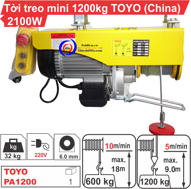 Tời điện mini Toyo được phân phối bởi công ty TNHH Thiết Bị Công Nghiệp M5s. có khả năng nâng hạ từ 100kg -1200kg. Do đó, máy tời điện mini Toyo thường được sử dụng phổ biến trong các nhà máy, xí nghiệp có nhu cầu nâng hạ với tải trọng hàng không quá lớn, hay sử dụng trong gia đình để nâng hạ các vật nặng lên các tầng trên cao,...