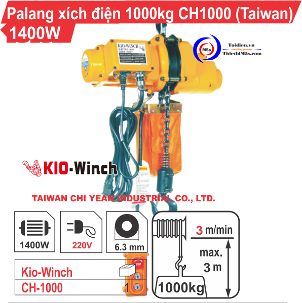 Palăng điện KIO Winch được Công ty TNHH Thiết bị Công nghiệp M5S nhập khẩu chính hãng từ Đài Loan, cung cấp CO-CQ đầy đủ. Quý khách hàng hoàn toàn có thể yên tâm về nguồn gốc cũng như chất lượng sản phẩm.