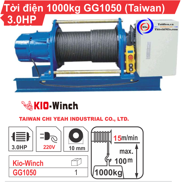 TỜI ĐIỆN 1 TẤN KIO WINCH GG-1050 xuất xứ từ Đài Loan, một trong những quốc gia luôn đi đầu về công nghệ. Sản phẩm được sản xuất trên công nghệ hiện đại và kiểm tra nghiêm ngặt theo tiêu chuẩn an toàn trước khi đưa ra thị trường. Tời điện đa năng 1000kg của hãng KIO Winch được đánh giá là sản phẩm chất lượng và sử dụng rộng rãi ở hầu hết các lĩnh vực từ công ty, nhà xưởng, công trình xây dựng đến nâng hạ hàng hóa tại bến tàu, bến cảng,…