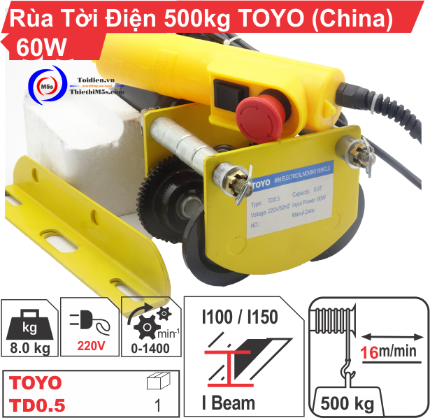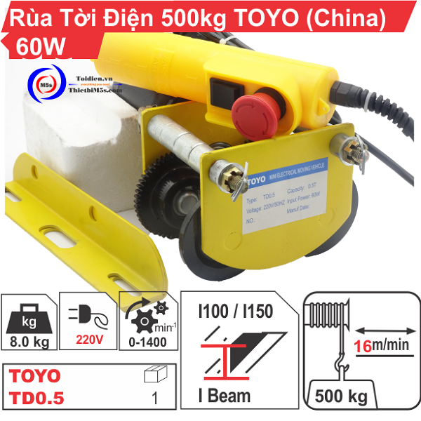 Rùa tời điện 500kg TOYO là thiết bị sử dụng điện năng, được thiết kế dành riêng cho dòng máy tời điện hiệu PA.