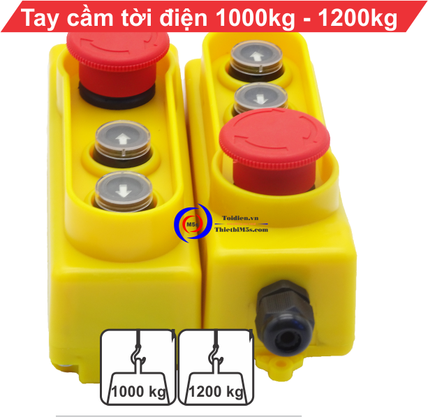 Tay cầm điều khiển tời điện 1000-1200kg là loại tay cầm sử dụng cho tời điện có tải trọng từ 1000-1200kg, không có tụ ở bên trong tay cầm như tay cầm điều khiển tời điện 200-800kg. Bởi vì tụ đã được tích hợp bên trong thân máy của tời tương ứng.