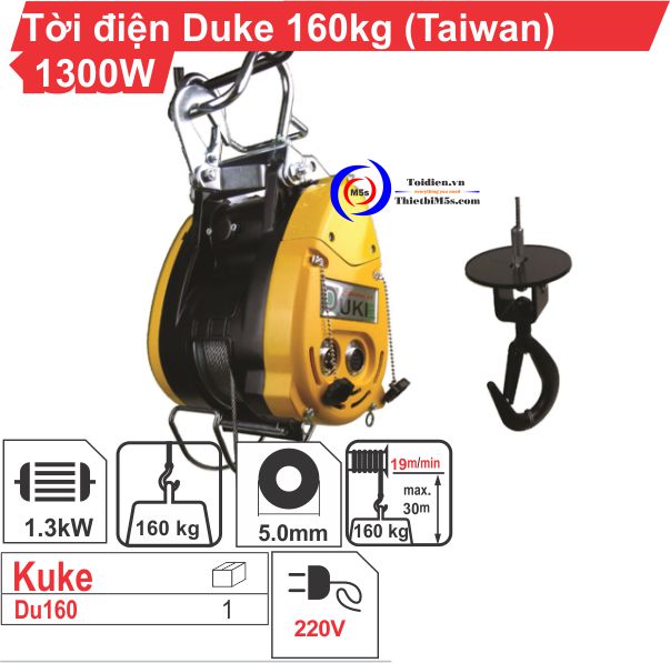 TỜI ĐIỆN TREO DUKE 160kg được sản xuất trên dây chuyền công nghệ hiện đại của Đài Loan. Tời 160kg DUKE có kích thước tương đối nhỏ gọn, giúp bạn dễ dàng vận chuyển, lắp đặt máy ở nhiều vị trí công việc khác nhau mà không kén không gian làm việc.