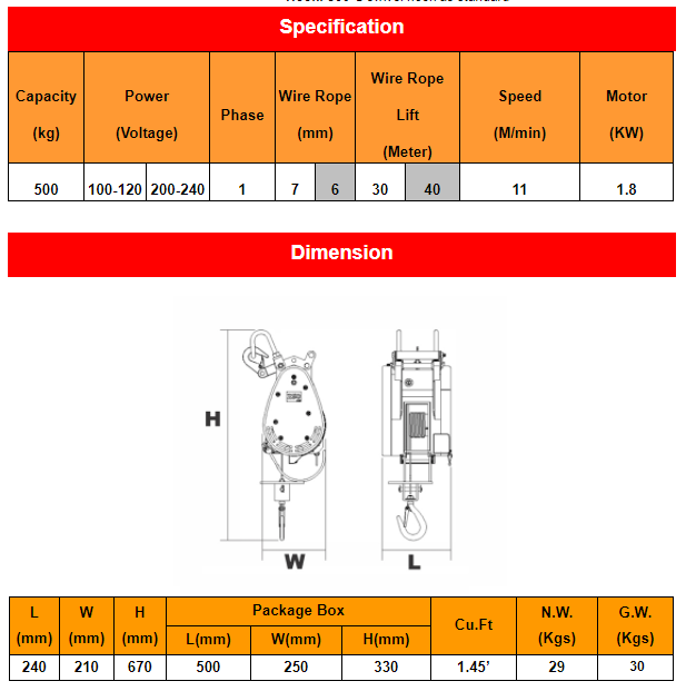 Ưu điểm đặc biệt của Tời treo DUKE 500kg với các loại tời điện khác là tốc độ nâng hạ cực kỳ nhanh chóng, giúp bạn tiết kiệm thời gian vận chuyển hàng hóa.