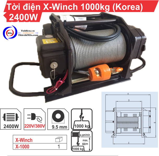 Ưu điểm đặc biệt của TỜI ĐIỆN 1000KG X-WINCH là khả năng tải được trọng lượng 1000kg với công suất 3.2 HP mạnh mẽ, khả năng nâng hạ 8.5 - 9.8m/phút, cực kỳ nhanh chóng so với các loại tời điện thông thường khác.